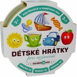 Objevte chytré hraní pro nejmenší. Sada Dětské hrátky 3v1 přináší tři oblíbené herní principy v jednom kompaktním balení: dynamického Hmaťáka na rychlý postřeh, klasické Domino na procvičení logiky a nadčasové Pexeso pro trénink paměti. Díky přehledným ilustracím se do hry snadno zapojí i nejmenší děti.