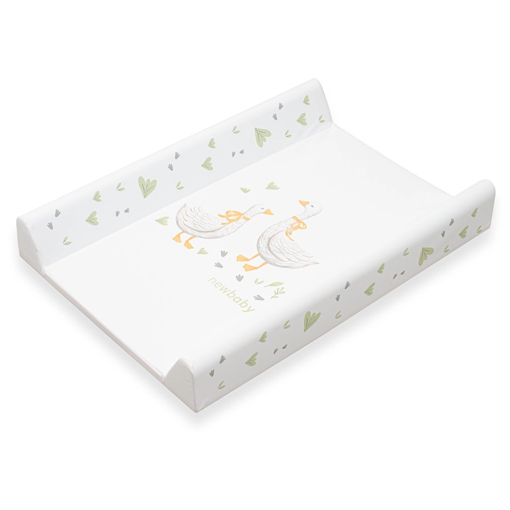 Praktický a bezpečný přebalovací nástavec New Baby s motivem husiček v pastelových barvách nabízí pohodlné a hygienické přebalování každý den. Má nepromokavý povrch, tvarované vyvýšené boky pro větší bezpečí a pevnou spodní desku pro stabilní uchycení na postýlku nebo stojan. Vyrobeno z certifikované fólie bez škodlivin, šetrné k dětské pokožce.