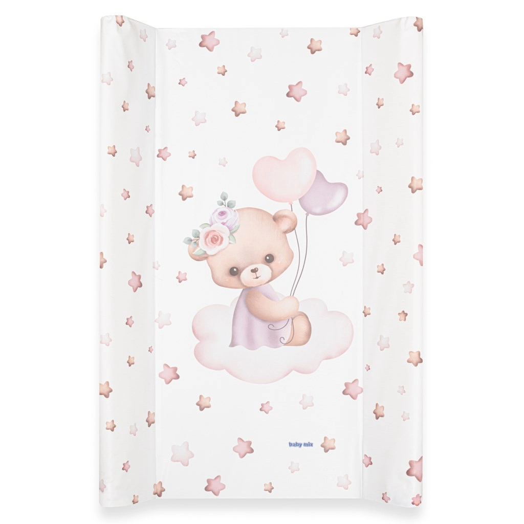 Přebalovací podložka BABY MIX v růžové barvě s roztomilým motivem medvídka je ideálním pomocníkem pro každodenní péči o miminko. Nabízí pohodlnou plochu, zvýšené okraje pro vyšší bezpečnost a snadno omyvatelný povrch bez škodlivých látek.
