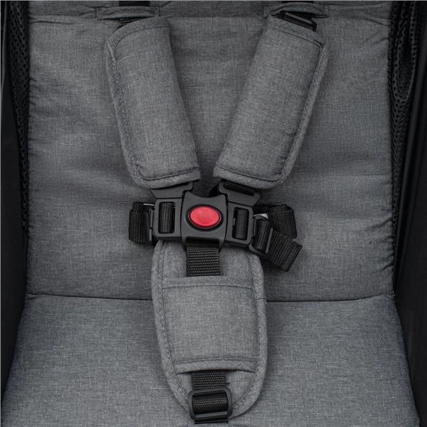 Odolný hliníkový rám s černým práškovým lakem zajišťuje nízkou hmotnost a dlouhou životnost. Polohovatelná opěrka zad od sedu po polo-leh a nastavitelná opěrka nohou zajistí pohodlí rostoucímu dítěti. Odnímatelná ochranná hrazda usnadní usazení i vyndávání dítěte a společná brzda zadních kol se postará o bezpečné stání.