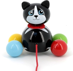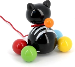 Tahací kočička Minou je skvělým společníkem pro první procházky po bytě. Děti si díky barevným kuličkovým kolečkům a červené šňůrce hračku snadno oblíbí a přirozeně rozvíjejí hrubou motoriku, stabilitu i koordinaci oko–ruka. Lehká a odolná konstrukce z lakovaného masivu je příjemná na dotek a snadno se čistí.