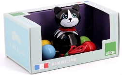 Minimalistický design s černým tělíčkem, bílou tlamičkou a pohyblivým ocáskem na pružince poskytuje dětem vizuální i zvukovou stimulaci při každém kroku. Kvalitní zpracování značky Vilac z francouzské výroby zaručuje bezpečnost a dlouhou životnost hračky.