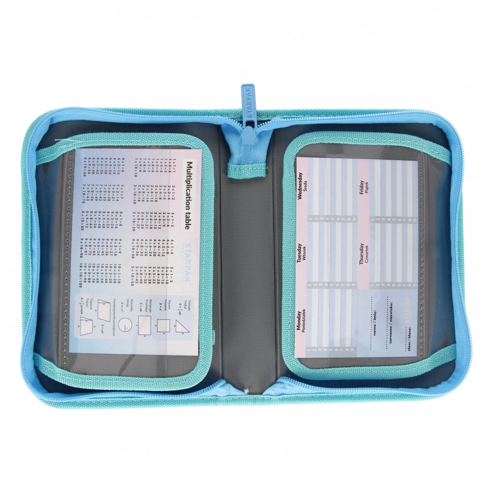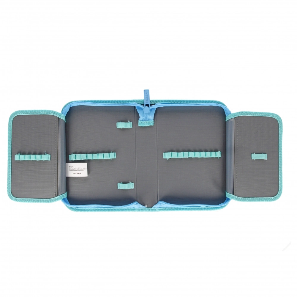 • Přehledná organizace – elastické úchyty a přepážky pro pera, tužky, pravítko či gumu.