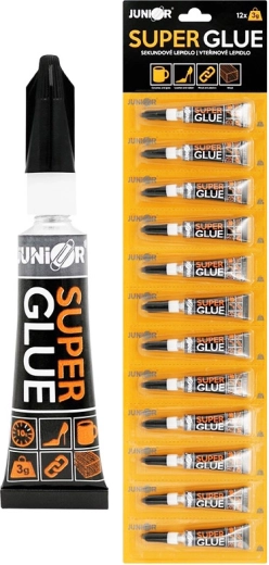 Univerzální sekundové lepidlo o hmotnosti 3 g pro rychlé a pevné spojení různých materiálů. Vhodné na keramiku, kůži, gumu, dřevo i korek. Prodává se jednotlivě, balení dodavatele po 12 ks. Vhodné od 3 let.
