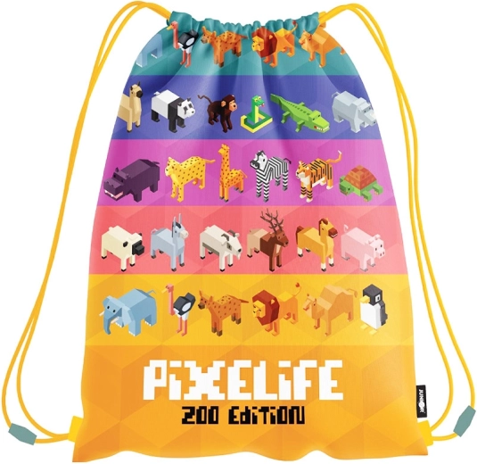 Stylový dětský vak s veselým motivem Pixel Zoo si děti rychle oblíbí. Díky kompaktním rozměrům 39 × 33 cm se pohodlně nosí na zádech i v ruce a vejde se do něj vše potřebné na volnočasové aktivity.