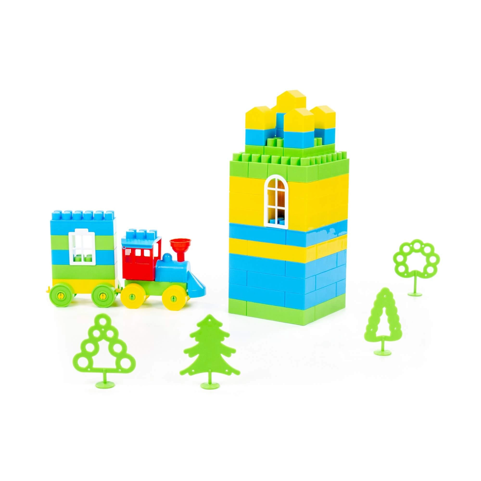 Postavte impozantní věž a malý vláček s vagónkem. Zelené doplňky pomáhají vytvářet vlastní příběhy a prostředí.