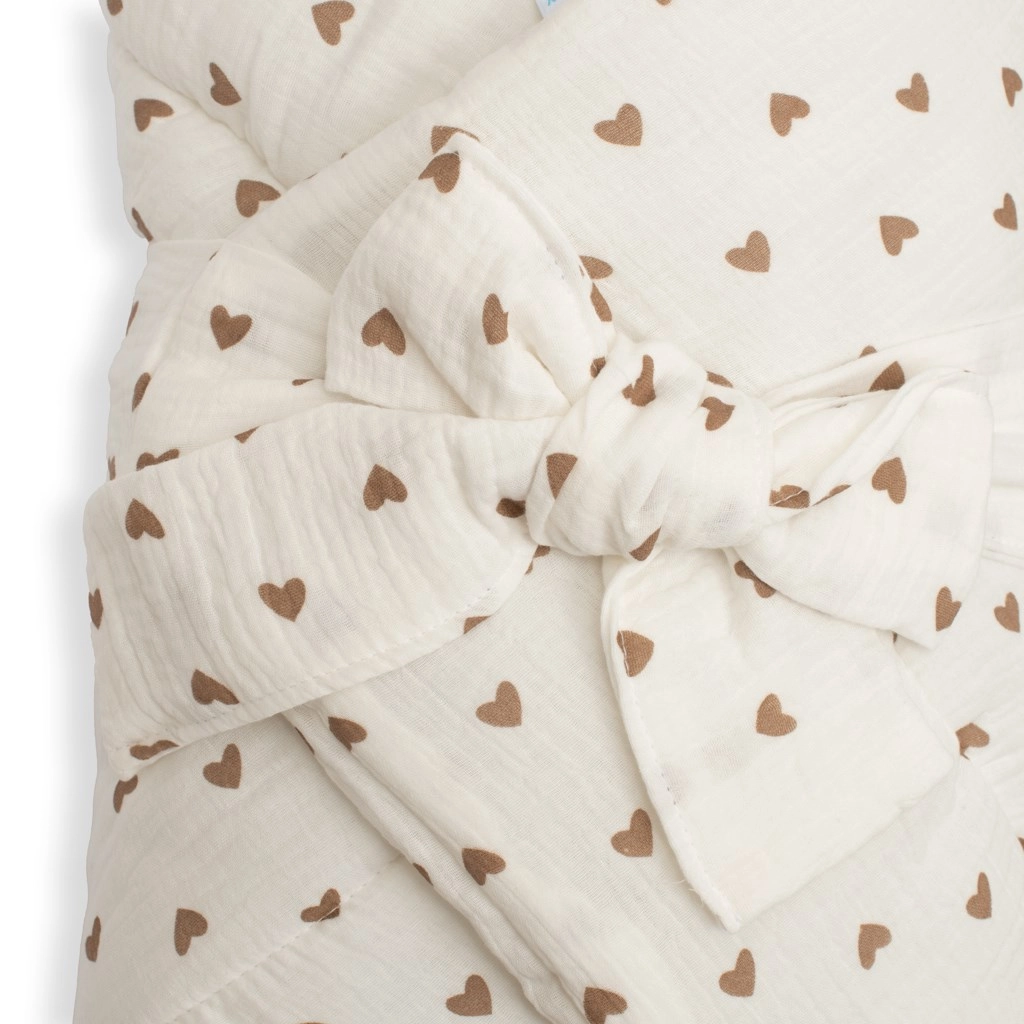 Objevte pohodlí a jemnost mušelínu – jedné z nejčistších a nejjemnějších tkanin. Díky lehké a prodyšné struktuře mušelín skvěle dýchá, je odolný vůči častému praní a časem se stává ještě měkčí. Zavinovačka NEW BABY Little Heart s roztomilým srdíčkovým motivem pomáhá miminku cítit se jako v maminčině bříšku a přináší větší klid a jistotu.