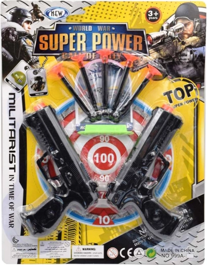 Tato dětská sada s pistolemi a terčem přináší spoustu zábavy při míření a tréninku přesnosti. Díky přísavkovým nábojům je hra bezpečná pro děti a vhodná pro domácí i venkovní použití. Kompaktní pistole s rozměry 12 × 8 cm se pohodlně drží i menším dětem.