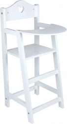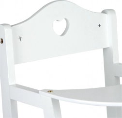 Tato dřevěná jídelní židlička pro panenky v čistě bílé barvě je stylovým doplňkem dětského pokoje i obýváku. Decentní výřez srdce v opěrce dodává roztomilý vzhled, zatímco pevná konstrukce zajišťuje bezpečnou a dlouhodobou zábavu.