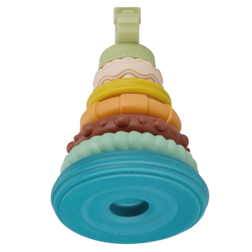 Každý kroužek má jiný povrch – rýhy, výstupky a vlnky. Podporuje smyslové vnímání a přirozené zkoumání světa prsty i ústy.