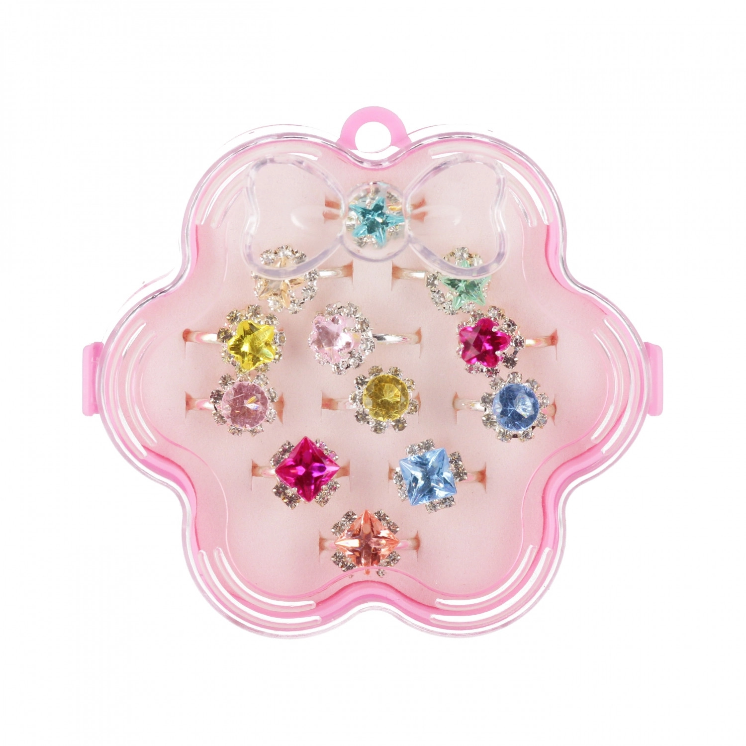 Tento kouzelný set nabízí pestrý výběr prstýnků s lesklými kamínky a nápaditými tvary, které děti milují. Každá krabička ukrývá 12 kusů, díky nimž si mohou děti snadno sladit doplněk s oblíbeným oblečením nebo kostýmem. Krabička zároveň slouží jako praktické uložení a ochrana prstýnků.