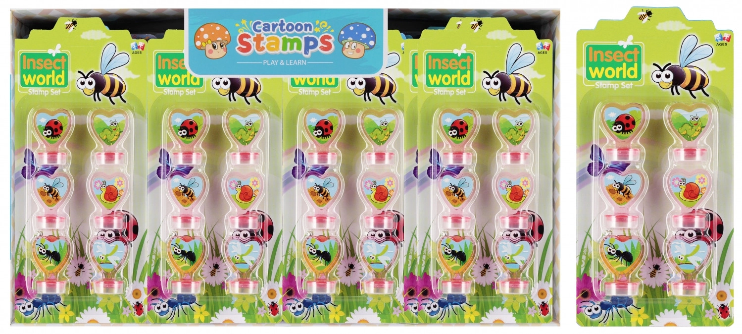• 6 různých razítek s motivy hmyzu pro rozmanité tvoření.
