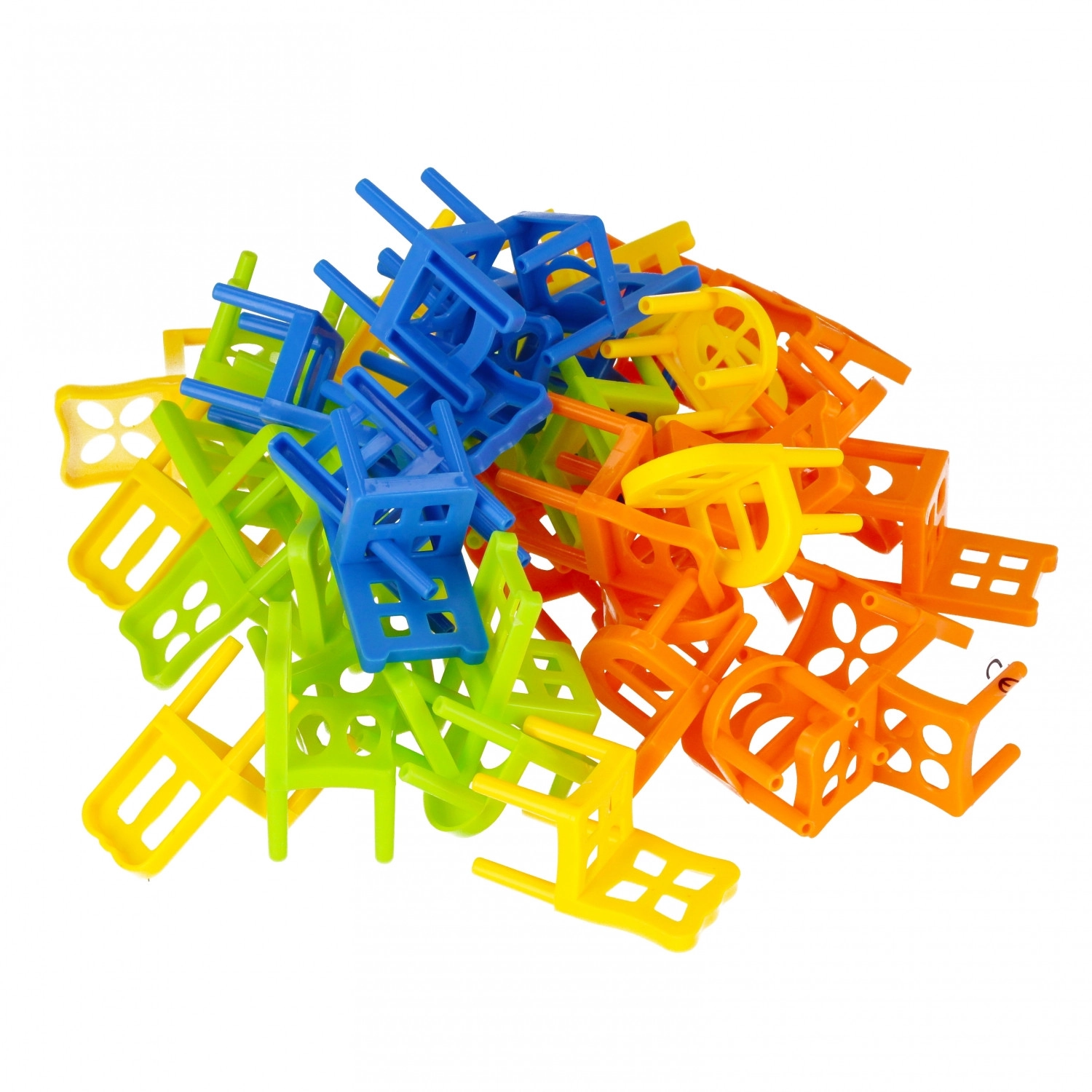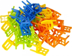 Zábavná rodinná hra, ve které hráči postupně skládají plastové židličky do výšky a snaží se zabránit jejich pádu. Sada obsahuje 60 židliček, rozvíjí jemnou motoriku, trpělivost a strategii. Ideální společenská zábava pro děti od 3 let.