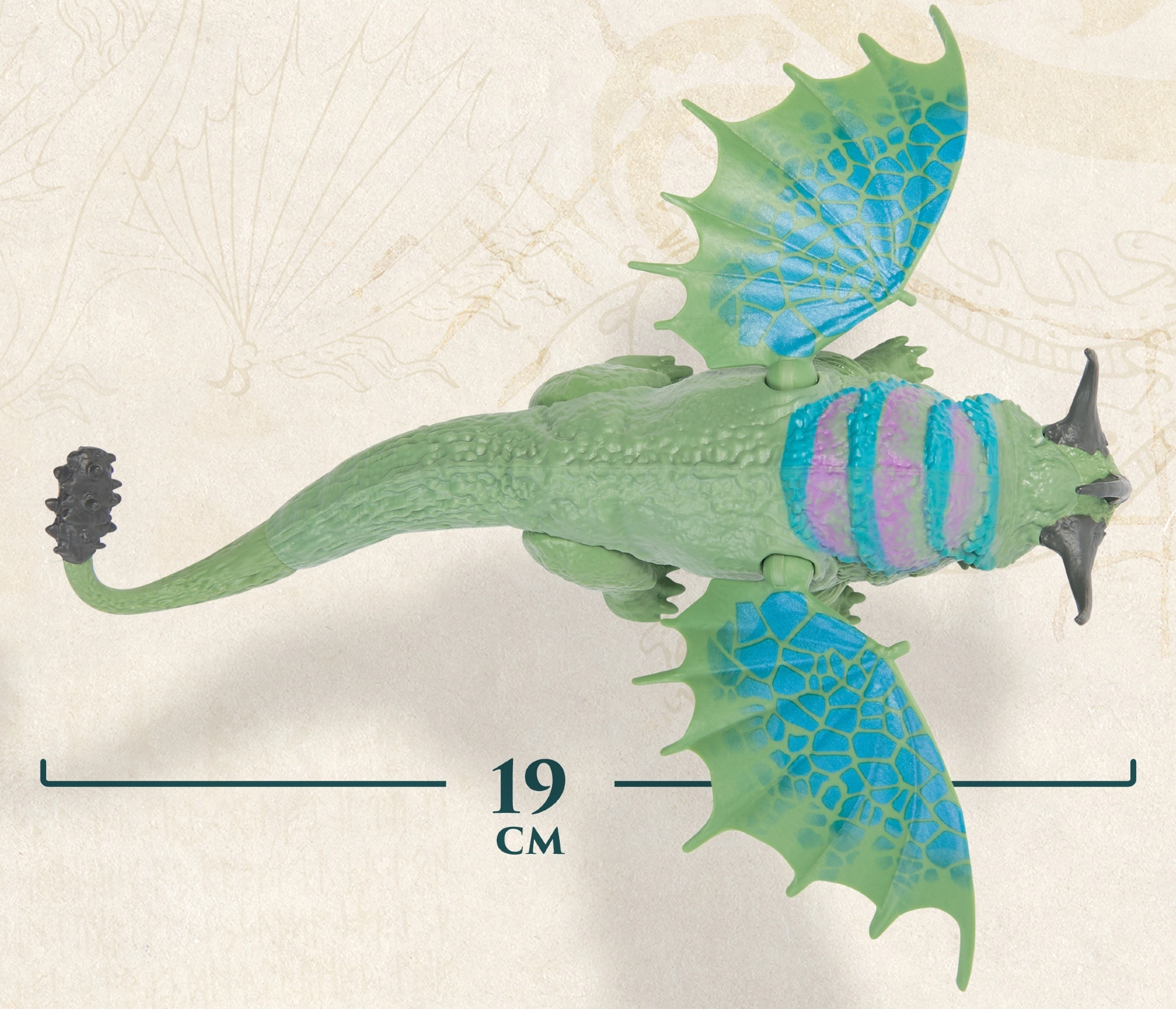 Figurka Rumblehorn zaujme masivní postavou, výraznými rohy a velkými křídly s unikátním vzorem. Je inspirována filmovým světem DREAMWORKS Dragons a věrně zachycuje vzhled oblíbeného draka. Pohyblivé klouby umožňují dynamické pózy – od vzletu nad Berk až po bojové postoje.