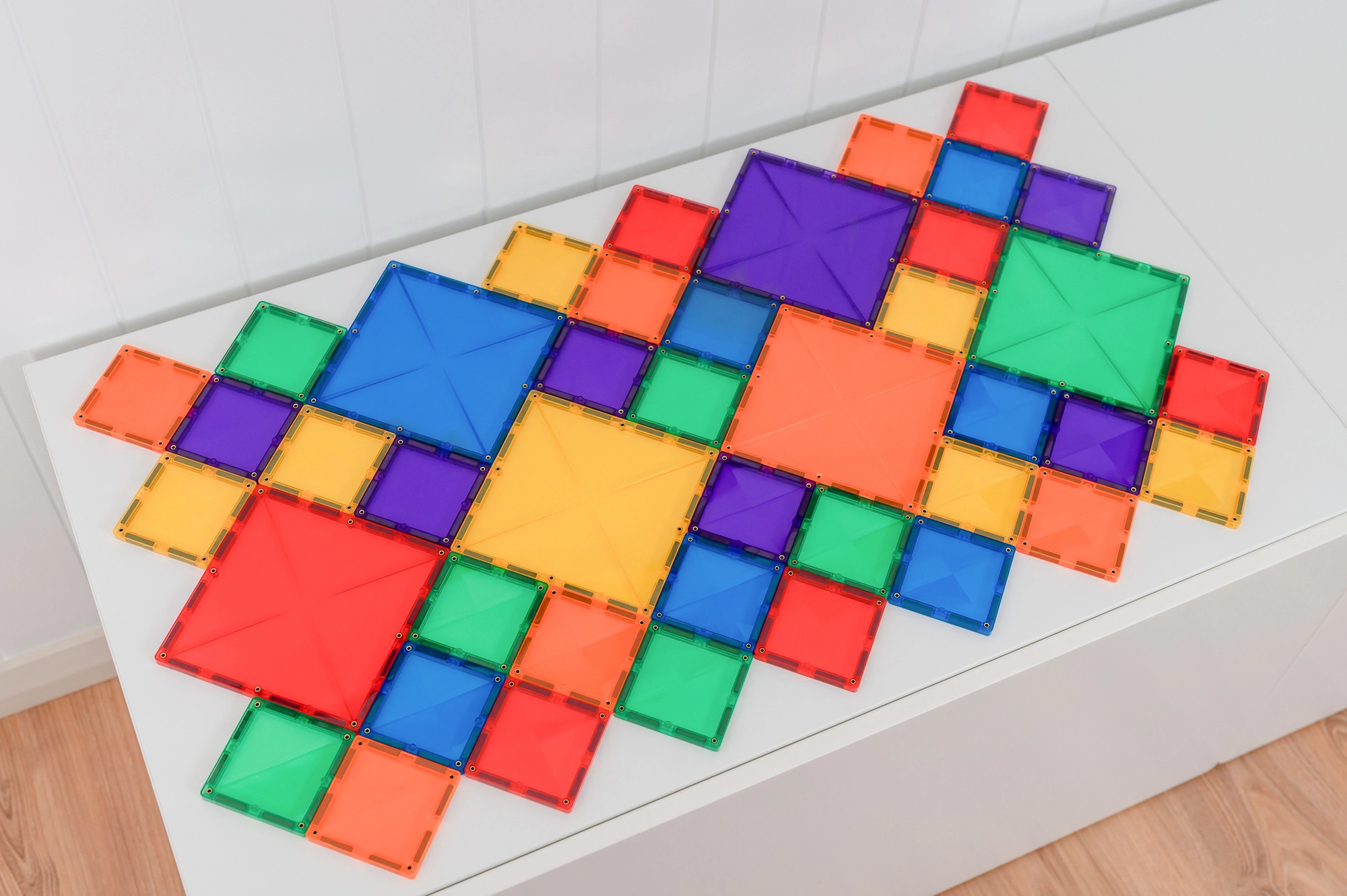 Každý dílek obsahuje nýtované neodymové magnety, které se přitahují ze všech stran. Konstrukce jsou pevné, stabilní a snadno se rozšiřují do výšky i šířky.
