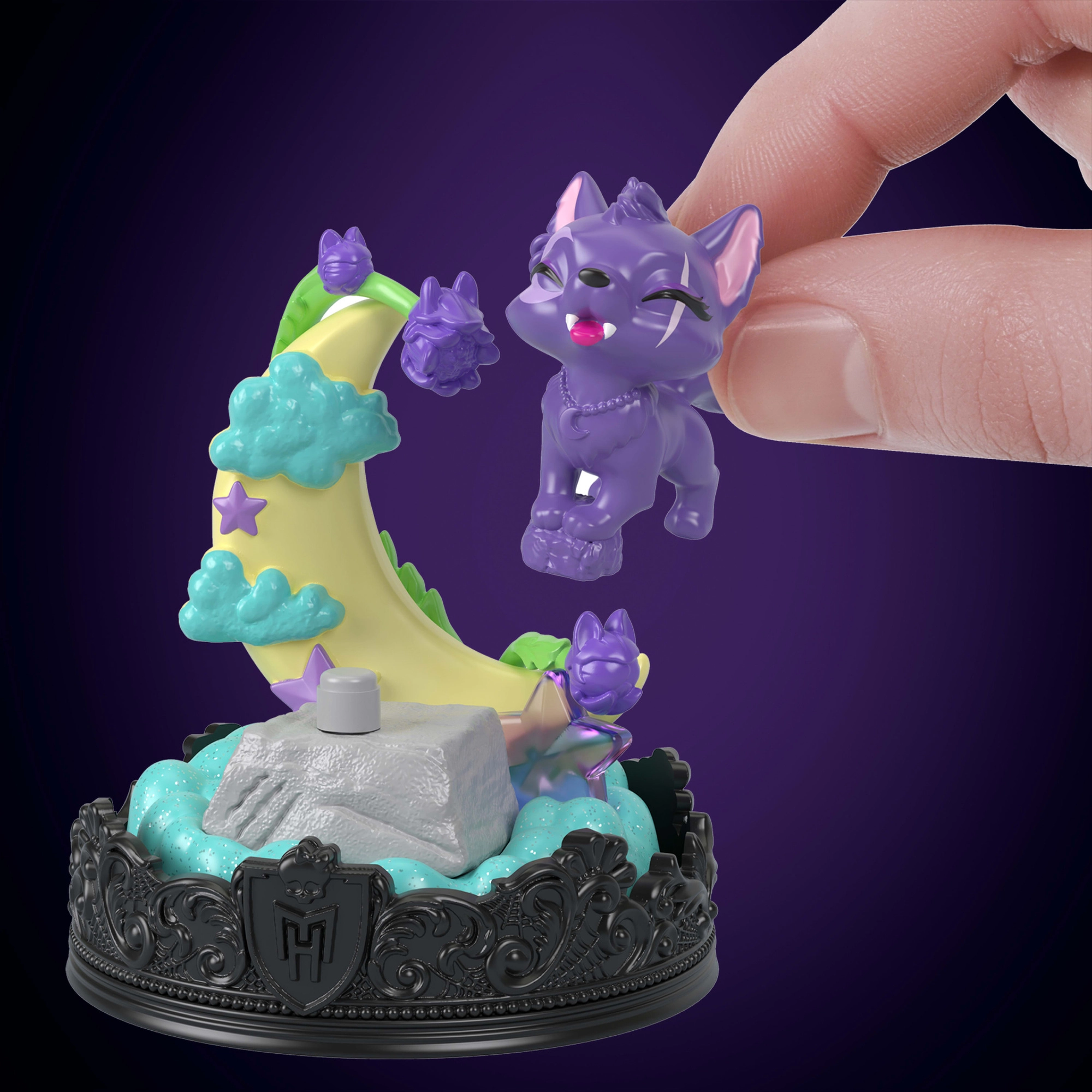 Přeneste se do kouzelného, miniaturami nabitého světa MONSTER HIGH. Každý set umožní dětem navrhnout vlastní scénu pro mazlíčka Crescent – od dekorativních podstavců až po drobné ozdoby – a proměnit ji v stylový přívěsek. Průhledná kopule chrání figurku a vše bezpečně drží pohromadě, aby mohl mazlíček doprovázet své majitele na každém kroku.