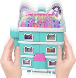 Součástí je mikropanenka Gabi a roztomilé kočičí postavičky, nábytek i funkční doplňky jako kočičí výtah, vyklápěcí bannery, miniaturní koupelna a další vychytávky, které podporují kreativní hru a rozvoj jemné motoriky.