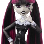 Draculaura z edice Reel Drama vzdává hold filmové klasice – kontrastní černobílý styl s růžovými akcenty, dlouhé černé vlasy s růžovými pramínky a gotické líčení vytváří výrazný vzhled, který nadchne fanoušky i sběratele. Díky plné artikulaci je ideální pro hraní, focení i vystavení na stojánku.