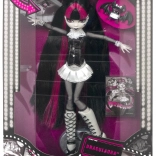 Outfit kombinuje korzetový top s krajkou, bílou plisovanou sukni a síťované punčochy. Celkový look doplňují šněrovací vysoké boty na podpatku a drobné tematické doplňky. V balení nechybí oblíbený parťák Count Fabulous a dvojice plakátů – mini pro panenku a větší pro výzdobu pokoje.