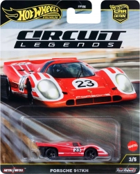 Kovový sběratelský model HOT WHEELS Premium z řady Circuit Legends věrně zobrazuje ikonické PORSCHE 917KH v intenzivně červené s bílými pruhy. Precizní zpracování v měřítku 1:64, gumové pneumatiky Real Riders a kovová karoserie zaručují realistický vzhled, skvělou jízdní hladkost a dlouhou životnost – ideální pro sběratele i dětskou hru.