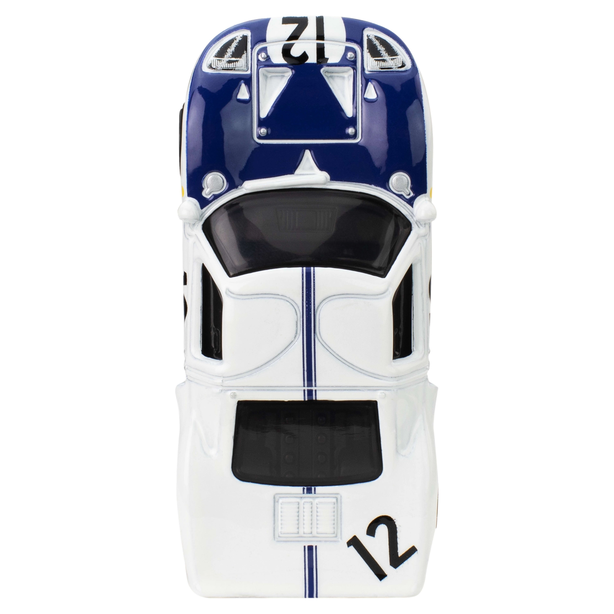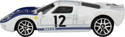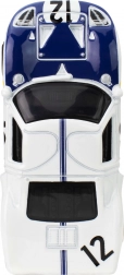 Bílá karoserie s modrými pruhy, číslem 12 a realistickými detaily zvýrazňuje ikonický vzhled vozu FORD GT40.
