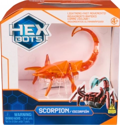 Oranžový škorpion HEX BOTS je atraktivní robotická figurka s průhledným tělem, která vyniká dynamickým pohybem a světelnými efekty. Vibrační mechanismus rozhýbe jeho mnohačlenné nohy, takže se dokáže obratně pohybovat, měnit směr, narážet do stěn a zábavně se převracet. Svítící ocas dodává hře efektní vizuální podívanou.