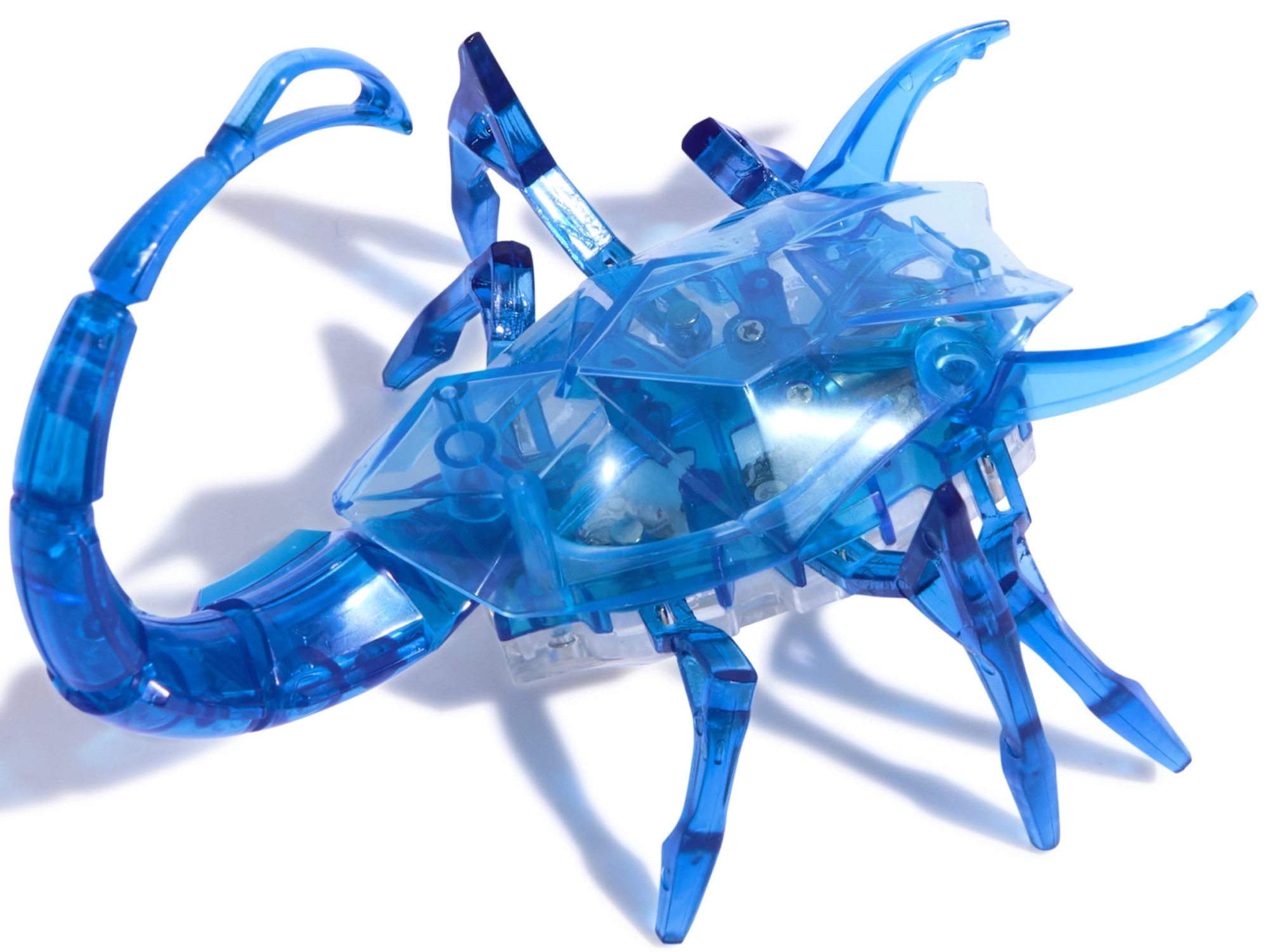 Senzační robotická hračka HEXBUG Scorpion od společnosti Spin Master přináší dynamickou interaktivní zábavu. Díky průhlednému modrému tělu je vidět na vnitřní mechanismy a dítě tak sleduje, jak vibrační motor rozpohybuje mnoho kloubových nožek i ocas.
