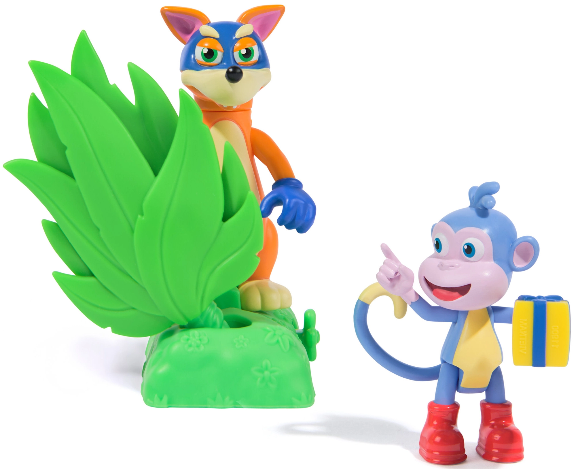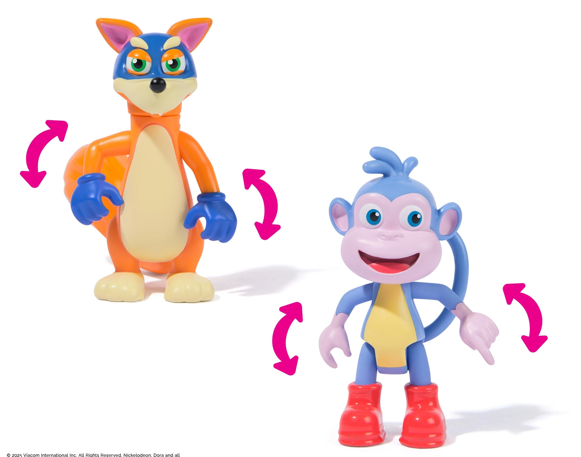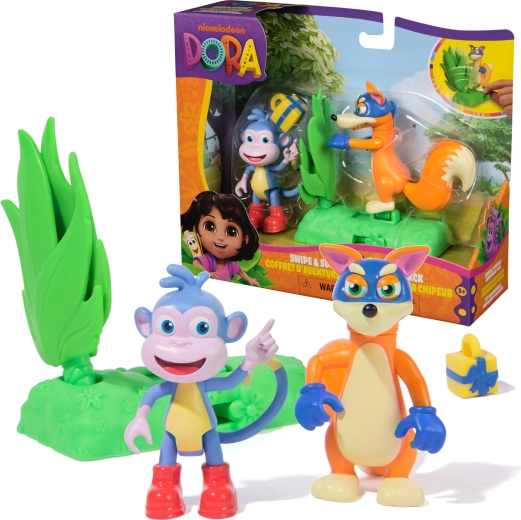 Objevte kouzlo světa DORA s hravým setem Swipe & Surprise. Figurka opičky Butek v ikonických červených botičkách a mazaný lišák Rabuš vytvářejí ideální dvojici pro napínavé honičky a zábavné scénky. Pohyblivé končetiny usnadňují pózování a podporují rozvoj jemné motoriky i představivosti.