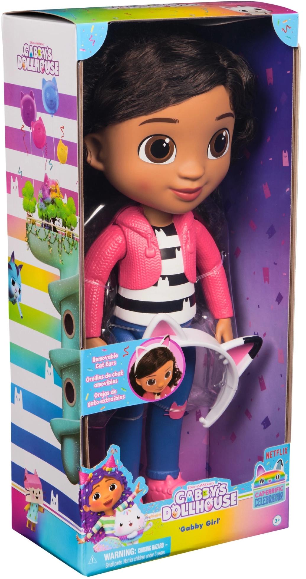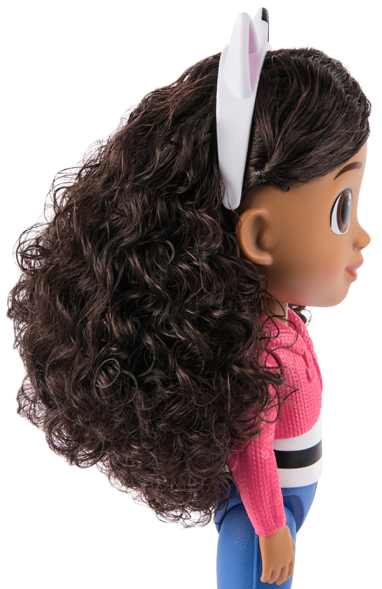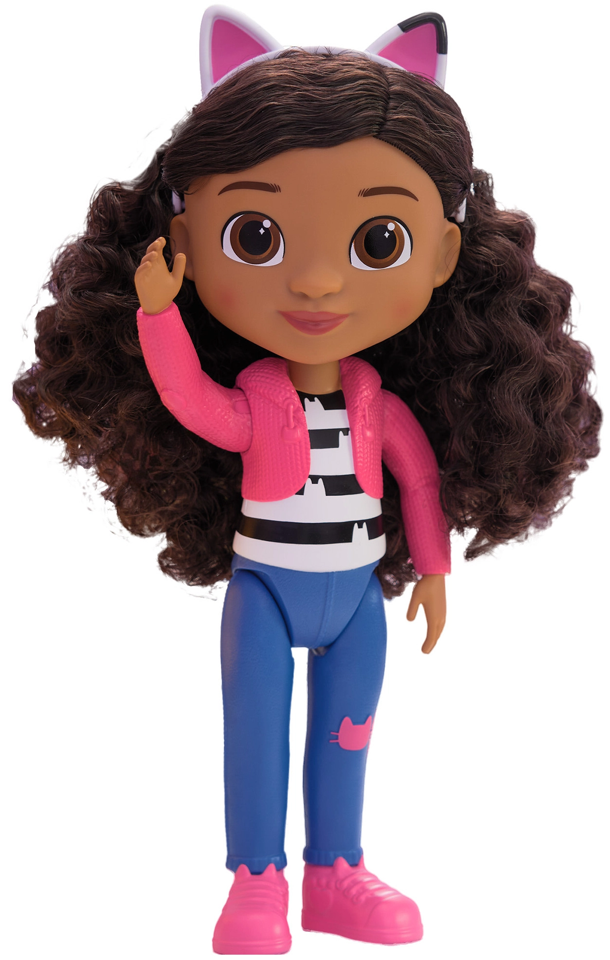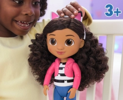 Objevte svět fantazie s panenkou Gabi inspirovanou seriálem GABBY'S DOLLHOUSE. Díky realistickým detailům, jako jsou velké výrazné oči, dlouhé kudrnaté vlasy a ikonická kočičí čelenka, je ideální pro kreativní příběhy i každodenní mazlení.
