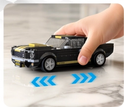 Užijte si precizní stavbu a autentický vzhled legendárního vozu SHELBY GT350H v licenci. Model vyniká černo‑zlatým lakováním, závodními pruhy, nasáváním na kapotě a detailní kabinou. Díky tištěným dílům bez samolepek vypadá model čistě a odolně i po dlouhé době vystavení.