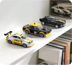 Hotový model měří přibližně 16 × 7,2 × 4,8 cm, proto skvěle zapadne na poličku, ale díky otáčivým kolům potěší i při hraní. Sada je zabalena v elegantní dárkové krabičce, takže se výborně hodí jako překvapení pro milovníky aut i stavebnic.
