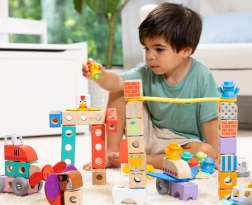 Masivní, hladké dřevěné díly se skvěle drží a snadno se skládají do věží i jednoduchých staveb. Perfektní pro trénink koordinace a rovnováhy.