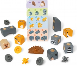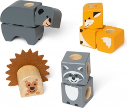 Díly s potisky zvířecích tváří a těl lze kombinovat do roztomilých postaviček i vlastních výtvorů. Podporuje představivost a samostatnou hru.