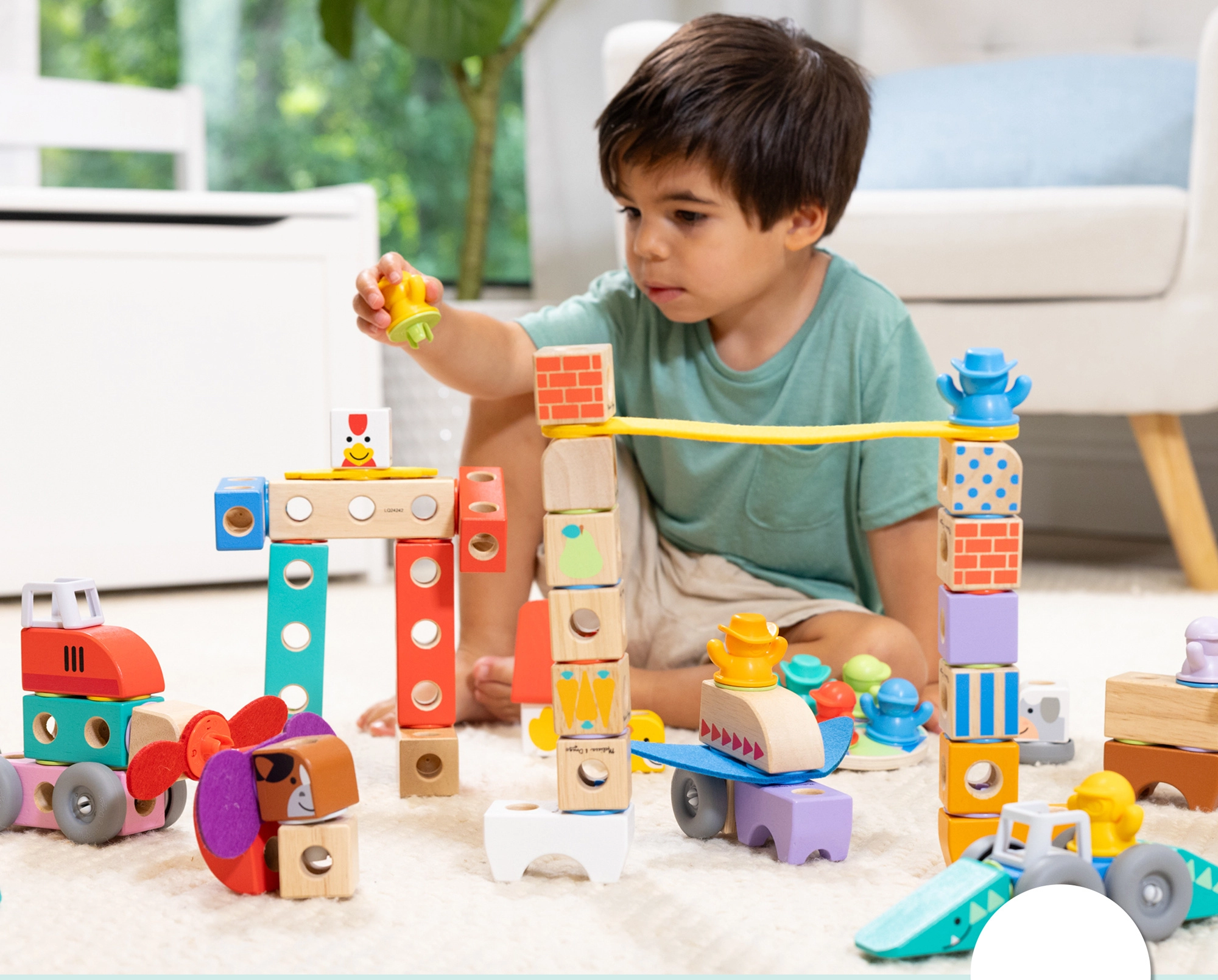 Díky pestrým tvarům a chytrým spojům si děti trénují jemnou motoriku, trpělivost i kreativní myšlení. Sada je skvělá pro volnou hru, vyprávění příběhů a první stavitelské pokusy. Kvalitní FSC dřevo a odolné provedení zajišťují dlouhou životnost a bezpečnost.