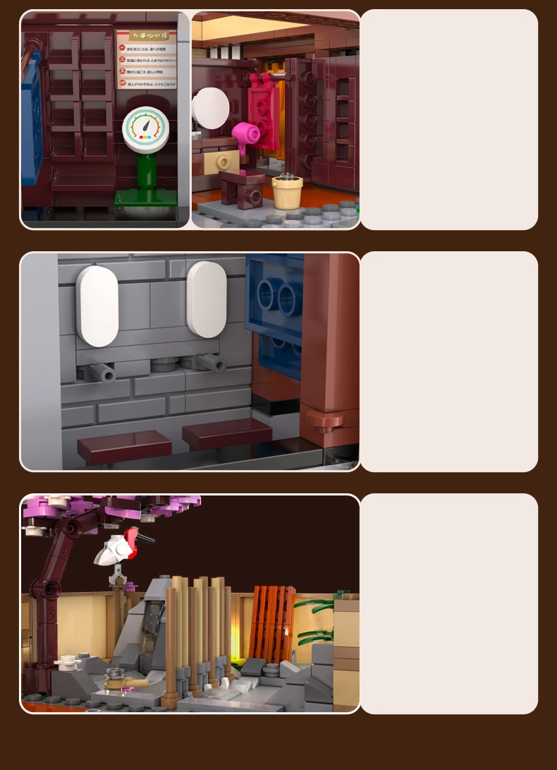 Tento propracovaný model tradiční japonské lázně Sento přináší autentickou atmosféru Dálného východu přímo do vaší sbírky. Vnější fasáda zaujme architektonickými detaily, jako je štít, sakurové květy a charakteristické prvky japonského stylu. Díky otevíratelným stěnám snadno nahlédnete dovnitř a oceníte realisticky vybavené místnosti.