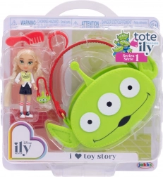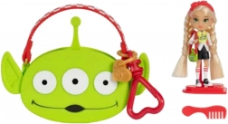 Mini panenka s dlouhými blond vlasy je oblečena do módního setu s motivem mimozemšťana z TOY STORY. Outfit doplňují sportovní botičky a mini kabelka ve tvaru hlavy mimozemšťana. Součástí je také velká růžová přenosná taška s motivem mimozemšťana, do které snadno uložíte panenku i její drobnosti – ideální pro hraní doma i na cestách.