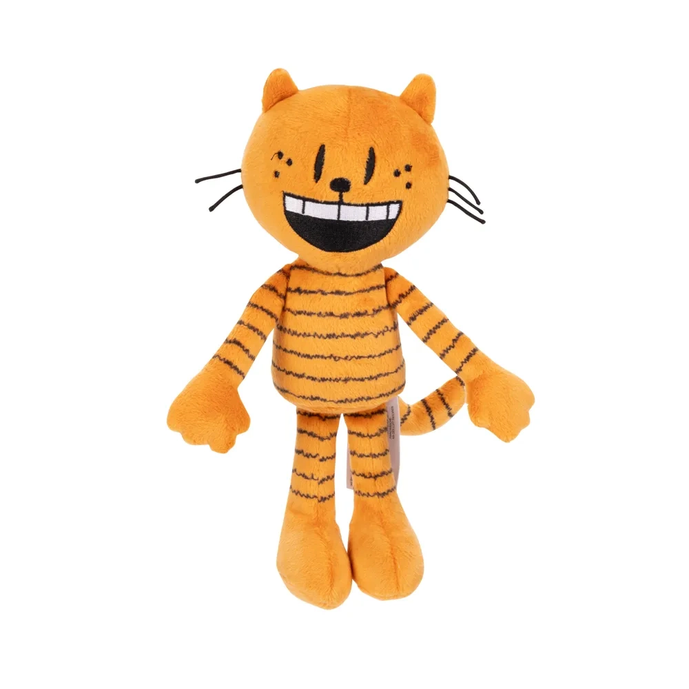 Plyšový kocour Petey potěší všechny fanoušky příběhů DOG MAN. Oranžové tělíčko s černými pruhy, široký úsměv a dlouhé končetiny přímo vybízejí k objetí. Měkká výplň a hebký povrch jsou příjemné na dotek a bezpečné i pro menší děti díky vyšívaným prvkům.