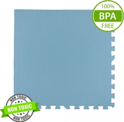 Bezpečí a pohodlí pro miminka od prvních dní: podložka z pružné EVA pěny je měkká, tlumí pády a izoluje od studené podlahy. Díky antiskluzovému povrchu podporuje bezpečné plazení, lezení i první krůčky. Neutrální, světle modrá barva neruší a ladí s interiérem.