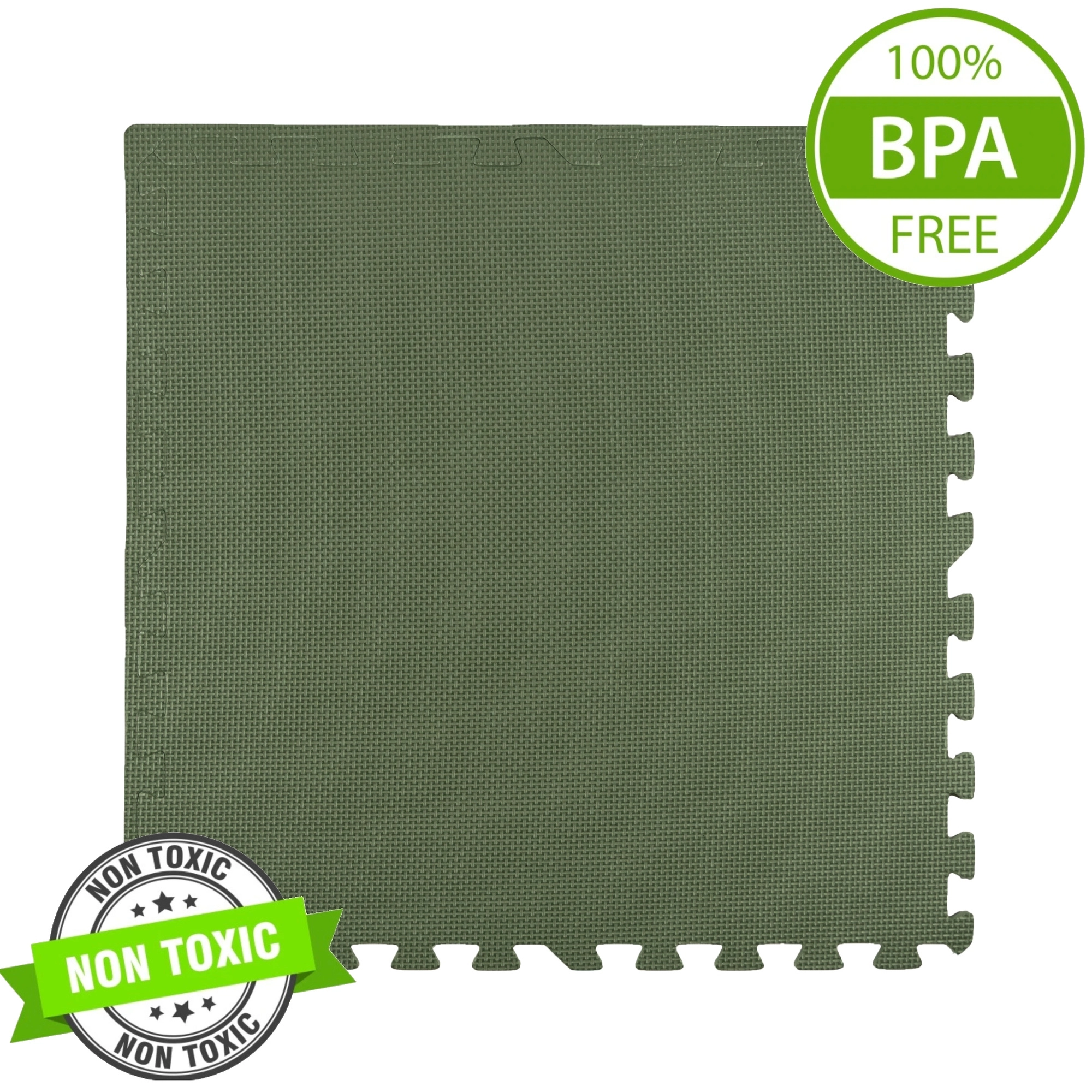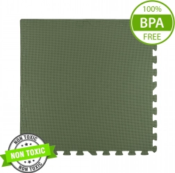 Měkká a bezpečná pěnová podložka z EVA v khaki barvě chrání před chladem a tlumí pády, je voděodolná, snadno se čistí a roste s dítětem. Sada obsahuje 3 velké díly 60 × 60 cm a 6 okrajů, které lze spojovat do větší plochy nebo tvarů. Splňuje normy EN 71 a má certifikaci CE.