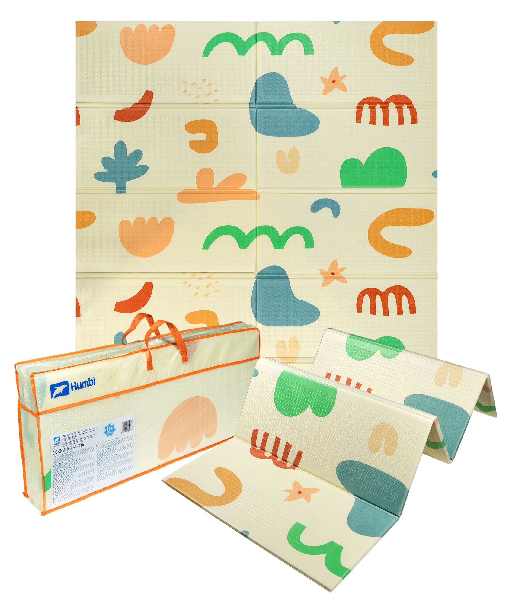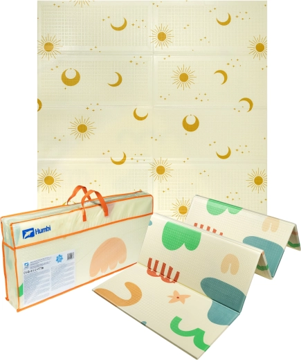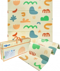 Velká, měkká a oboustranná pěnová podložka z materiálu XPE nabízí dětem od narození bezpečný a komfortní prostor pro hraní, lezení a první krůčky. Je skládací, lehká, voděodolná a snadno se čistí, v balení navíc s praktickou transportní taškou. Splňuje normy EN71 a má certifikaci CE, neobsahuje ftaláty, formamid, BPA ani PVC.