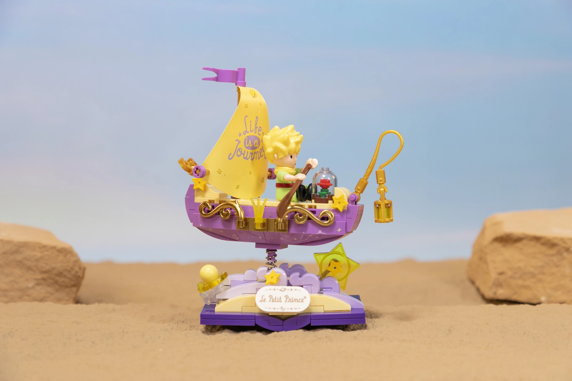 Ponořte se do poetického světa Malého prince a postavte si okouzlující loď „Starry Ride“ na knižním podstavci. Pastelové tóny fialové a žluté, hvězdičky, lucerna a ikonická růže pod skleněným „kalíškem“ vytvářejí něžnou vitrínovou dekoraci, která vynikne v každém interiéru.