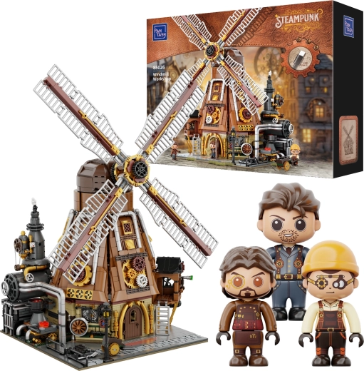Vstupte do světa vynálezců a fantazie se stavebnicí ve stylu steampunk, která kombinuje promyšlenou konstrukci s nádhernými detaily – trubky, převody, kotle i průmyslové prvky. Otáčivé lopatky větrného mlýna a další pohyblivé součásti dodávají modelu realistický nádech a dělají ze stavby i vystavení skutečný zážitek.