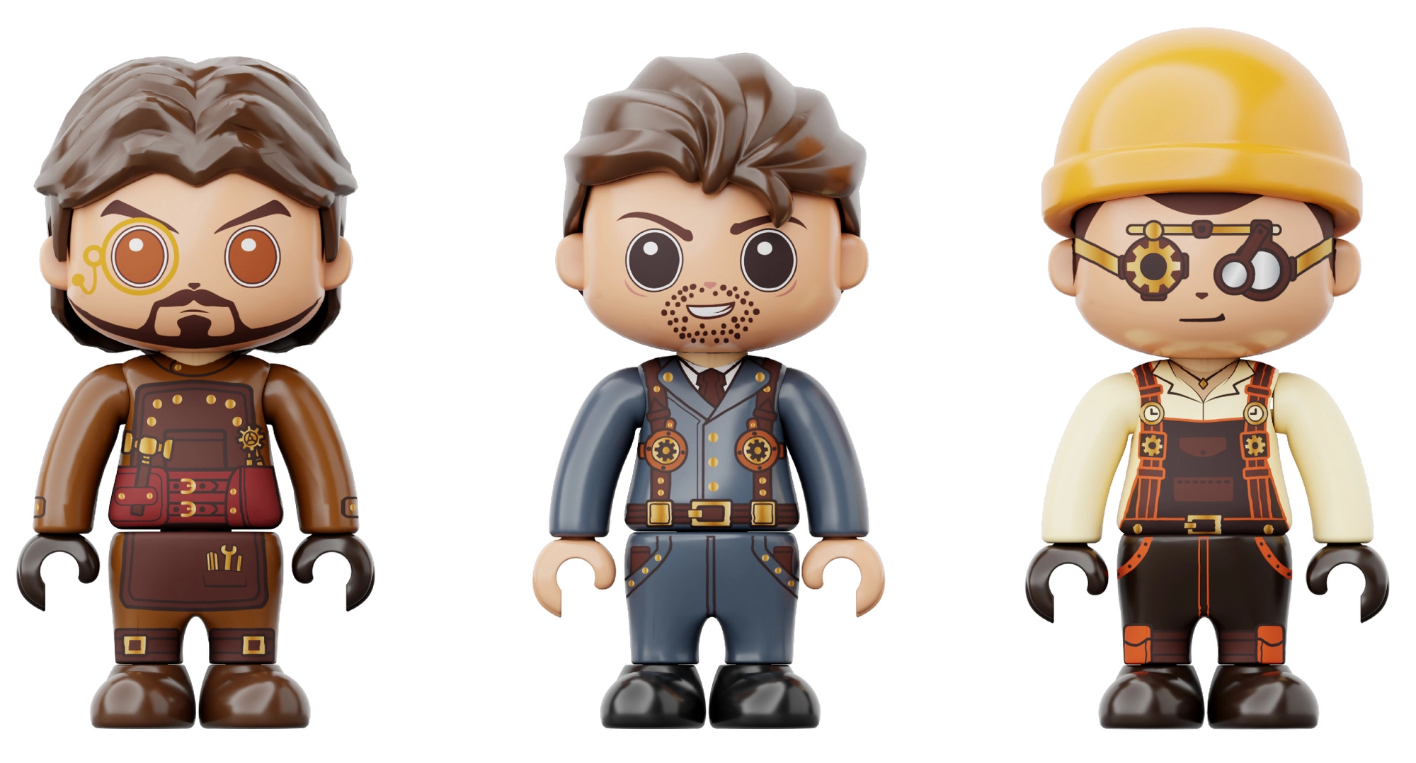 Sada obsahuje stylizované minifigurky vynálezce, kováře a tajemného hosta – ideální pro vymýšlení vlastních dobrodružství.