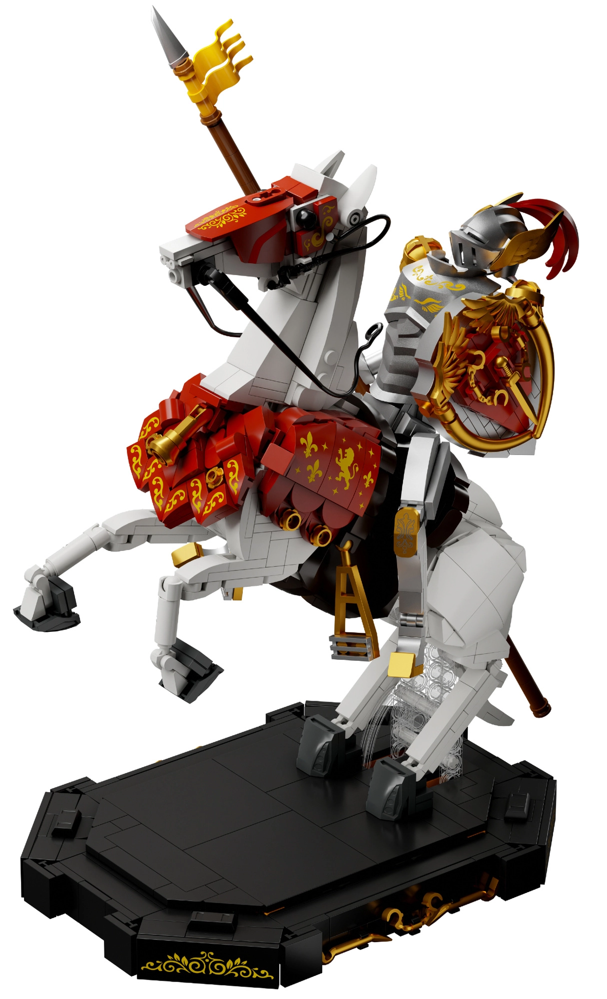 Tato propracovaná stavebnice přináší atmosféru středověkého rytířství přímo na váš stůl. Detailní výzbroj, ozdobné motivy a možnost nastavit různé pózy rytíře i koně zaručí atraktivní vystavení i kreativní hraní. Díky 905 dílkům a jasnému návodu je stavba plynulá a uspokojivá.