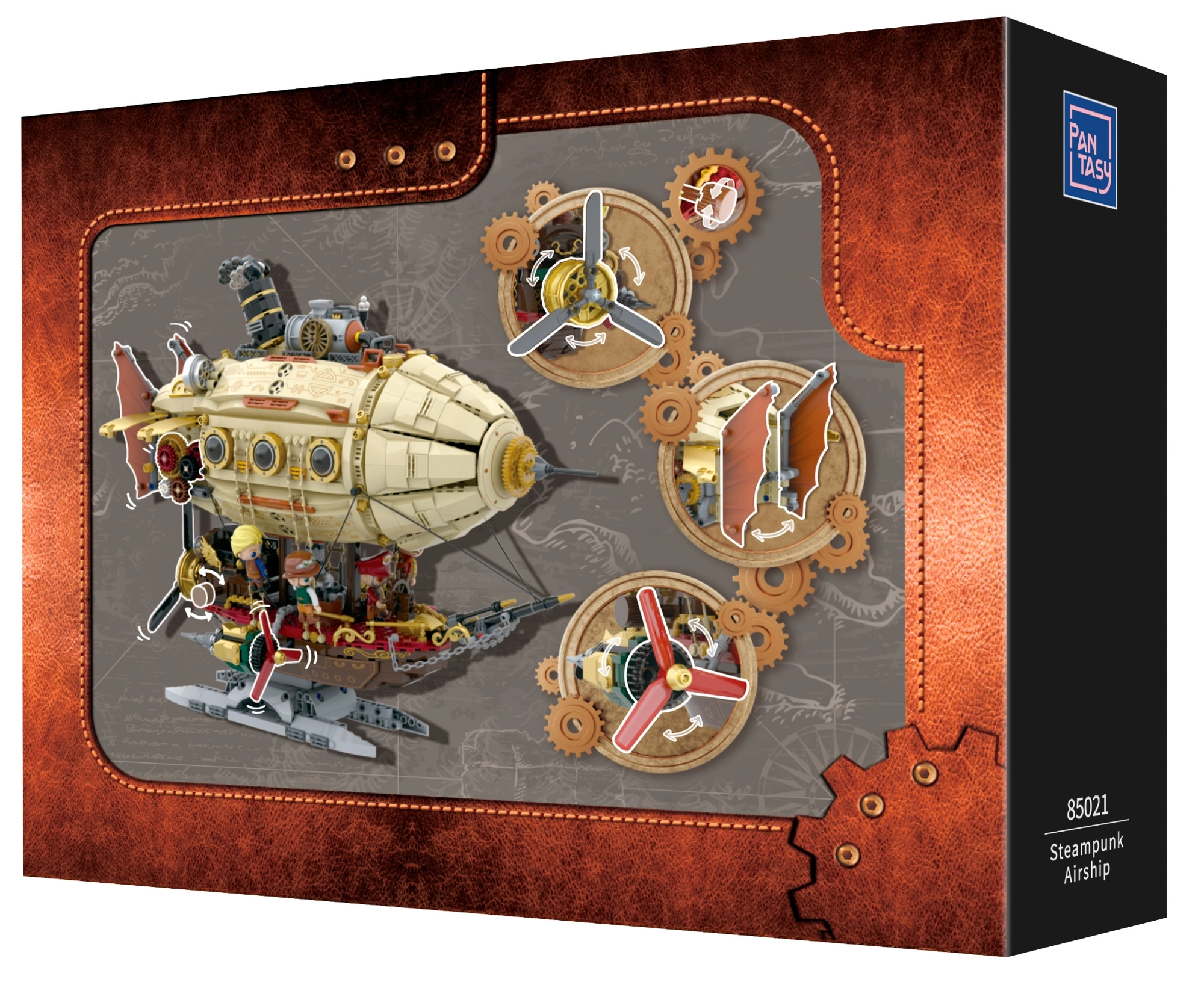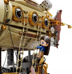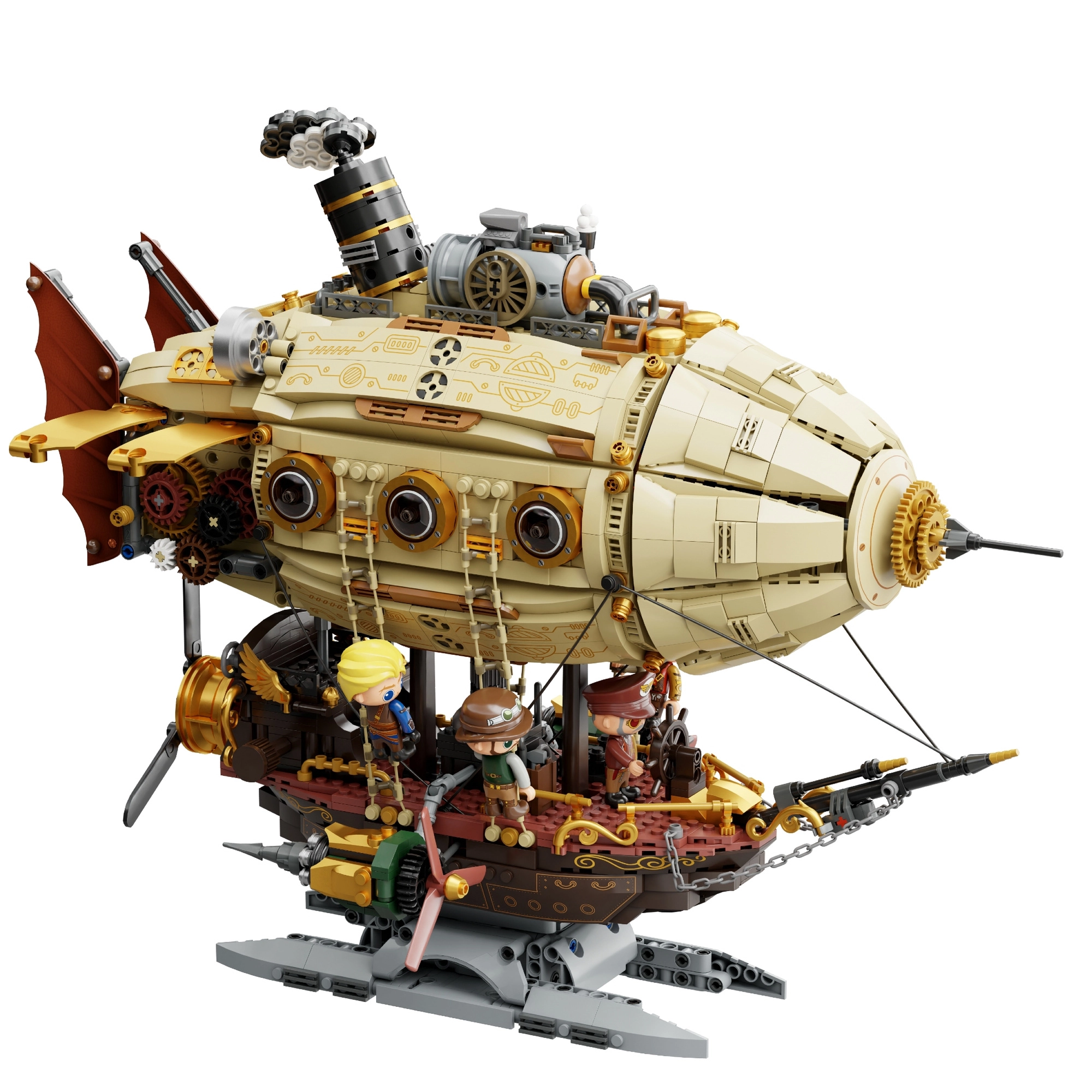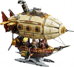 Tato steampunková vzducholoď spojuje elegantní retro estetiku s jedinečnými mechanickými detaily. Po sestavení vynikne velký balon, boční vrtule, lanoví a ozubená kola, která dodávají modelu autentický vzhled i skvělé herní možnosti. Díky pohyblivým částem a promyšlené konstrukci si užijete jak stavění, tak vystavení.