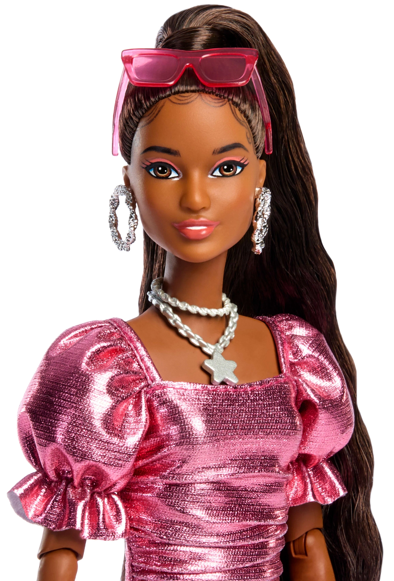 Objevte stylovou panenku BARBIE Deluxe Style v oslnivých korálových metalických šatech s nadýchanými rukávy a balónovou sukní. Díky pohyblivým kloubům snadno zaujme modelínské pózy a s bohatou sadou módních doplňků – náušnice, náhrdelník, sluneční brýle a kabelka – inspiruje k kreativnímu hraní a stylování. Ideální pro děti od 3 let i pro sběratele.