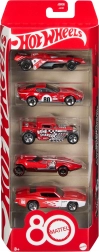 Hot Wheels Mattel rubínově červená kolekce 5 autíček k 80. výročí