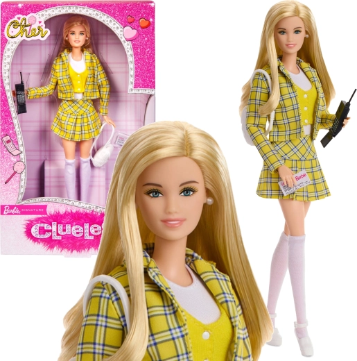Oslavte 30. výročí kultovního filmu Clueless se sběratelskou panenkou Barbie Signature Cher Horowitz. Stylová ikona 90. let září ve svém žlutém kostkovaném outfitu s plisovanou sukní, sakem a nadkolenkami. Nechybí realistické doplňky – bílý batůžek, „mobil“ s anténkou a dočasný řidičský průkaz. Panenka má kloubovou artikulaci pro pózování a je ideální pro výstavku i sbírku.