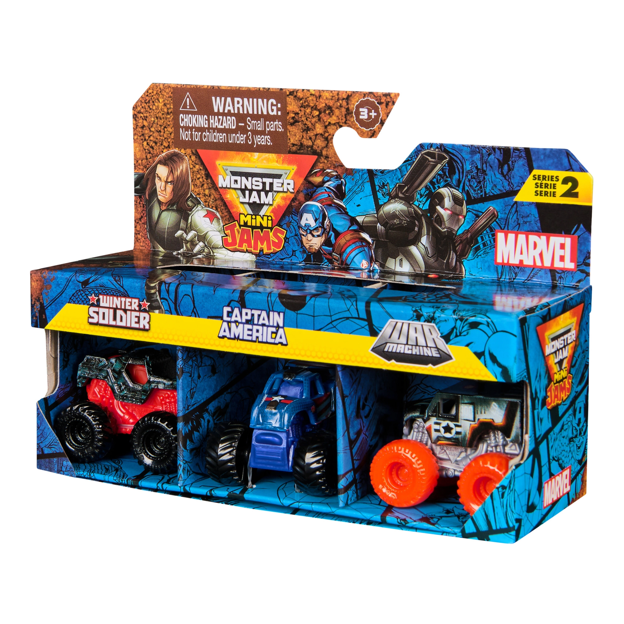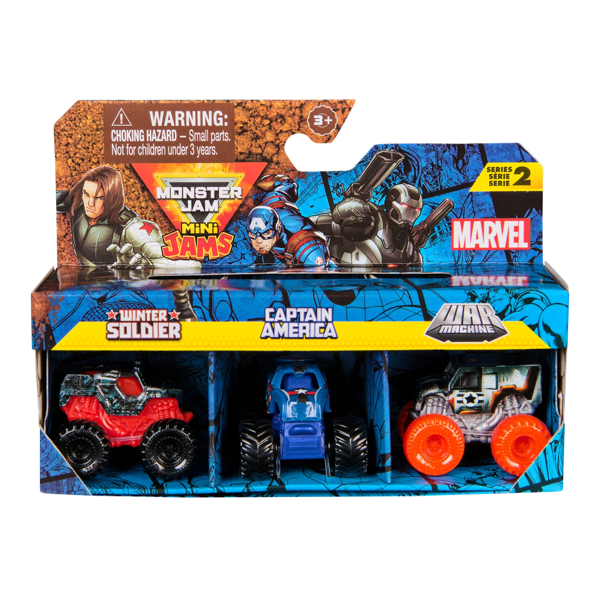 - 3× mini monster truck (Winter Soldier, Captain America, War Machine)