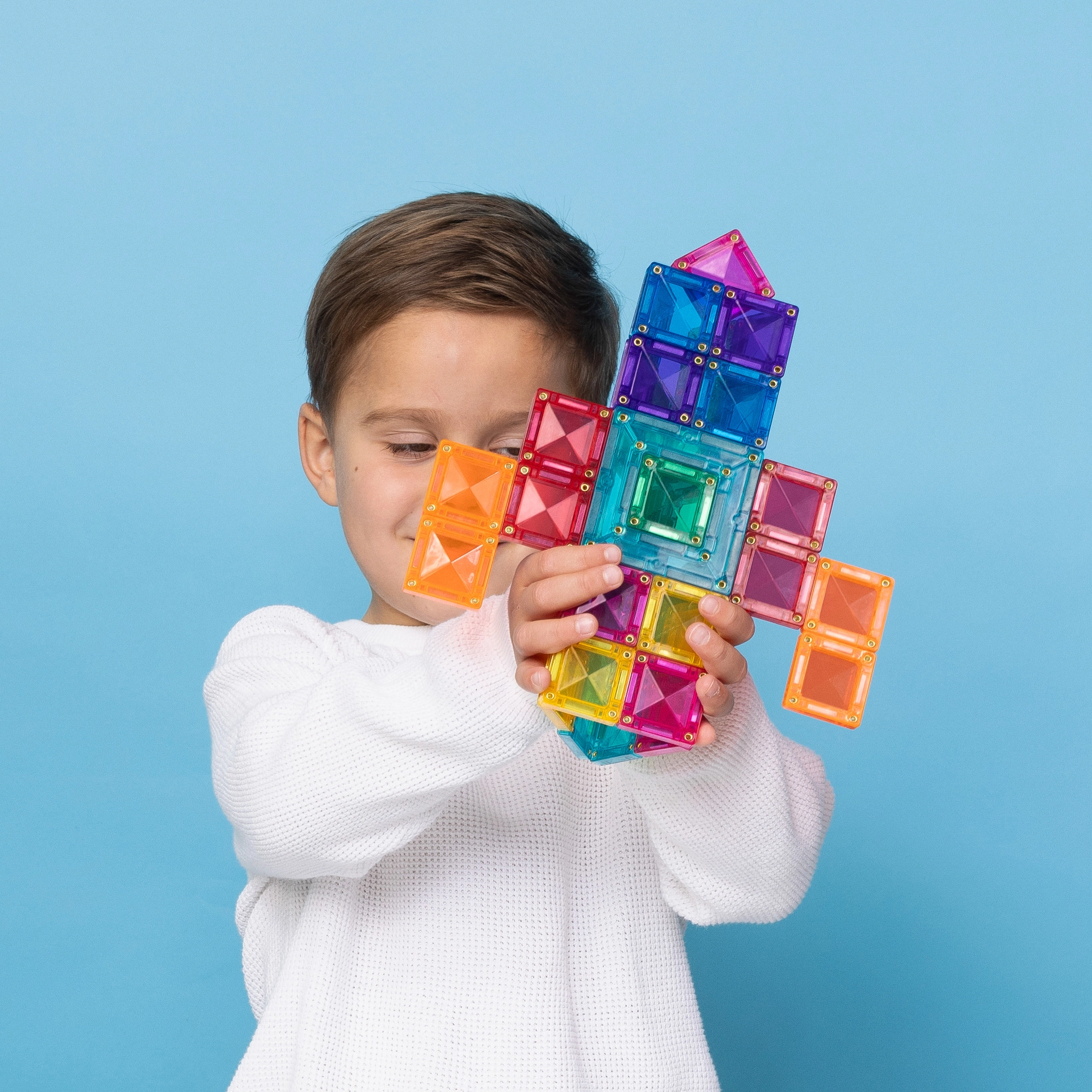 Dílky se přitahují ze všech stran a drží pevně pohromadě. Děti snadno budují vysoké věže, mosty i komplexní geometrické tvary bez zbytečného bortění.